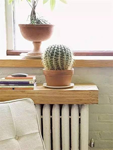 四、加裝臺面。在暖氣上加裝木板或釘一個木臺面。既能做書架或擺臺,一個特別的玄關就出來了
