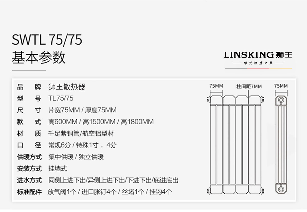 銅鋁復(fù)合暖氣片/散熱器75x75b
