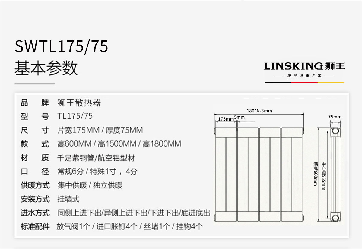 銅鋁復(fù)合暖氣片/散熱器_175x75